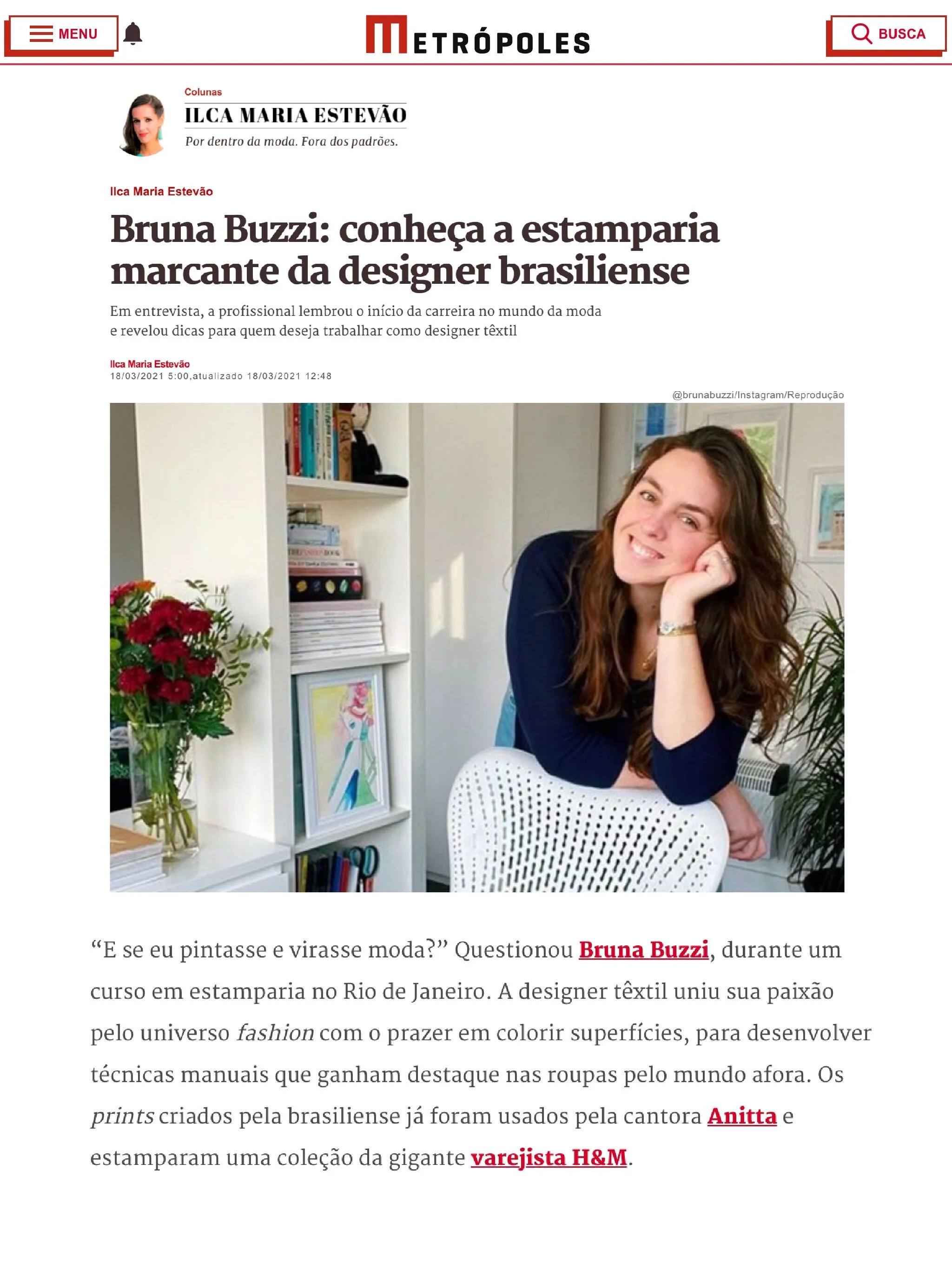 Bruna Buzzi 18/03/2021 Bruna Buzzi 18/03/2021 A talent already recognize by the Brazilian press It all begins with an idea. Read More Bruna Buzzi 08/03/2021 Bruna Buzzi 08/03/2021 Anitta wearing print by Bruna Buzzi Read More